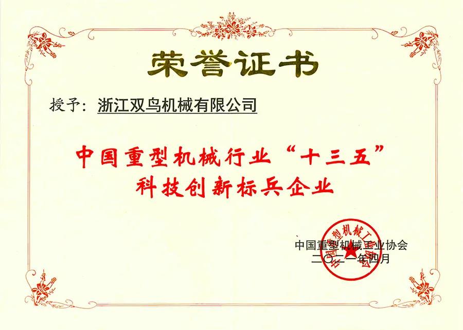 以創(chuàng)新應(yīng)變 為制造賦能 | 雙鳥機(jī)械榮獲“中國(guó)重型機(jī)械行業(yè)'十三五'科技創(chuàng)新標(biāo)兵企業(yè)”